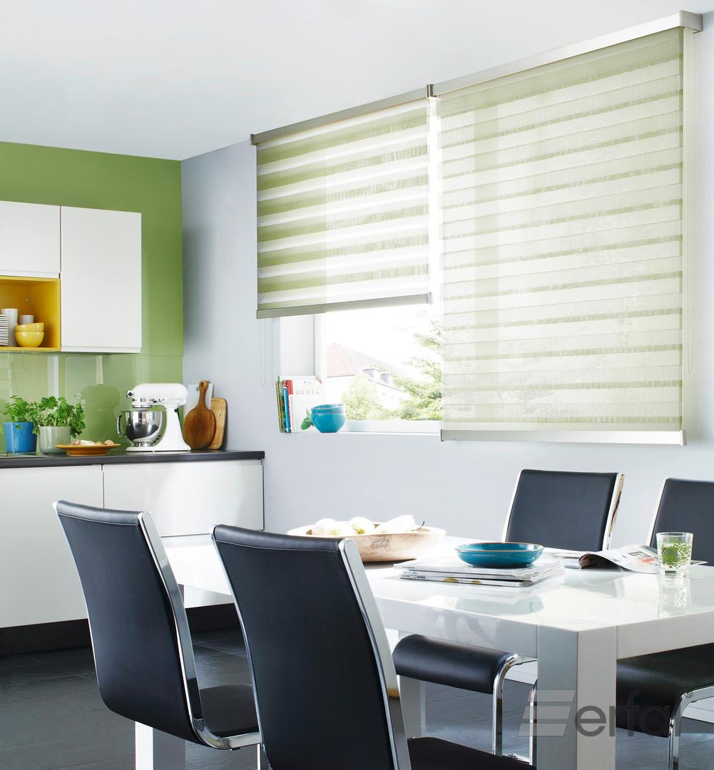 Das spezielle Doppelrollo ermöglicht durch gegeneinander laufenden Stoff ein faszinierendes Spiel mit Licht und Schatten. Abwechselnd transparente und blickdichte genähte Stoffe charakteresieren diesen Stoffbehang. Die Streifenhöhen können aus 8 verschiedenen Varianten gewählt werden. Auf Grund der Farbenvielfalt des Stoffangebotes gibt ein Doppelrollo die maximale Möglichkeit der Individualisierung!